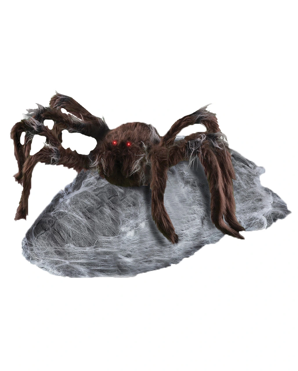 Die springende, braune Riesenspinne ist ein echter Schocker für deine Halloween Party und treibt so manchen Arachnophobiker in den Wahnsinn! Die braune Riesenspinne mit leuchtenden Augen und creeppy Sound springt ohne Vorwarnung auf ihr Opfer und sorgt für aufstehende Nackenhaare. Die Halloween Animatronic mit der imposanten Größe von ca. 90 cm ist batteriebetrieben und reagiert auf Geräusche und Bewegung. Bestelle dir jetzt den springenden Achtbeiner und erschrecke damit deine Party-Gäste.