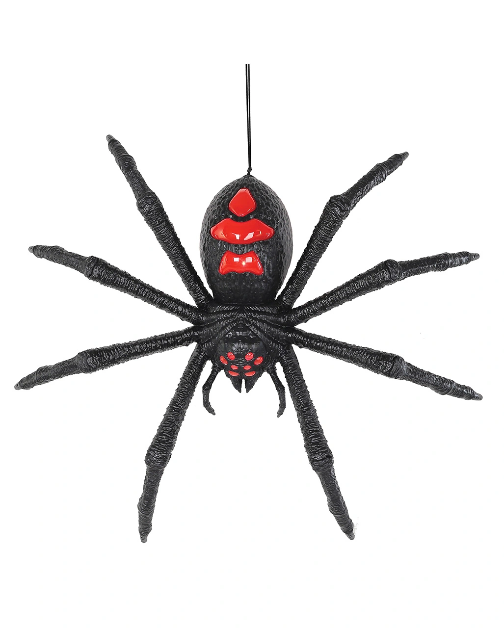 Die leuchtende Spinne als Halloween Deko hat eine beeindruckende Größe von 66 cm. Das achtbeinige Biest kommt mit unheimlichem Leuchteffekt und monströsem Sound. Du hast die Möglichkeit, die große Deko Spinne auf Dauerbetrieb einzustellen. Die hierfür erforderlichen Batterien sind separat erhältlich. Entdecke noch mehr XL-Halloween Deko wie unser Riesiges Spinnennetz für den Garten