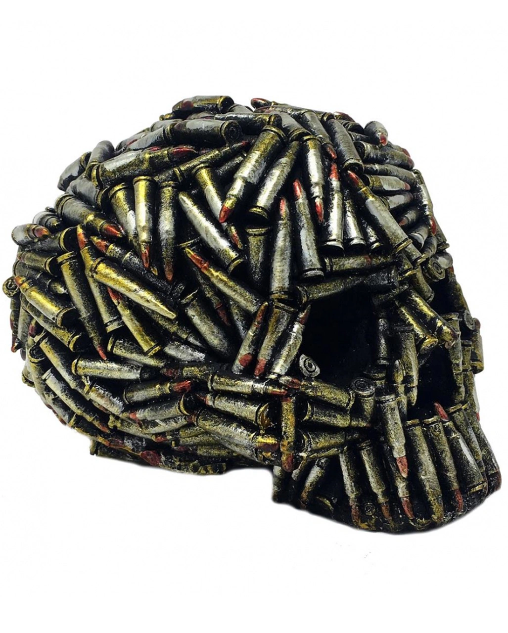 Komplettiere deine Sammlung an stylischen Totenköpfen mit unserem Totenschädel mit Patronenhülsen! Der realistisch aussehende Skull mit unzähligen Projektilen in verwitterter Optik stellt einen absoluten Hingucker und eine schaurige Deko für Halloween und Grusel Partys dar!